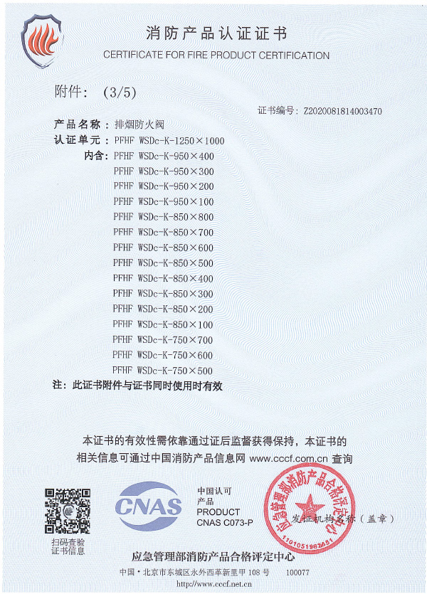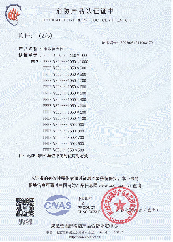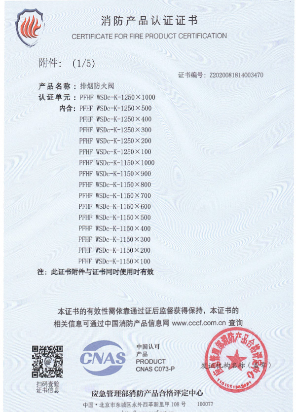 排煙防火閥認(rèn)證證書1250X1000